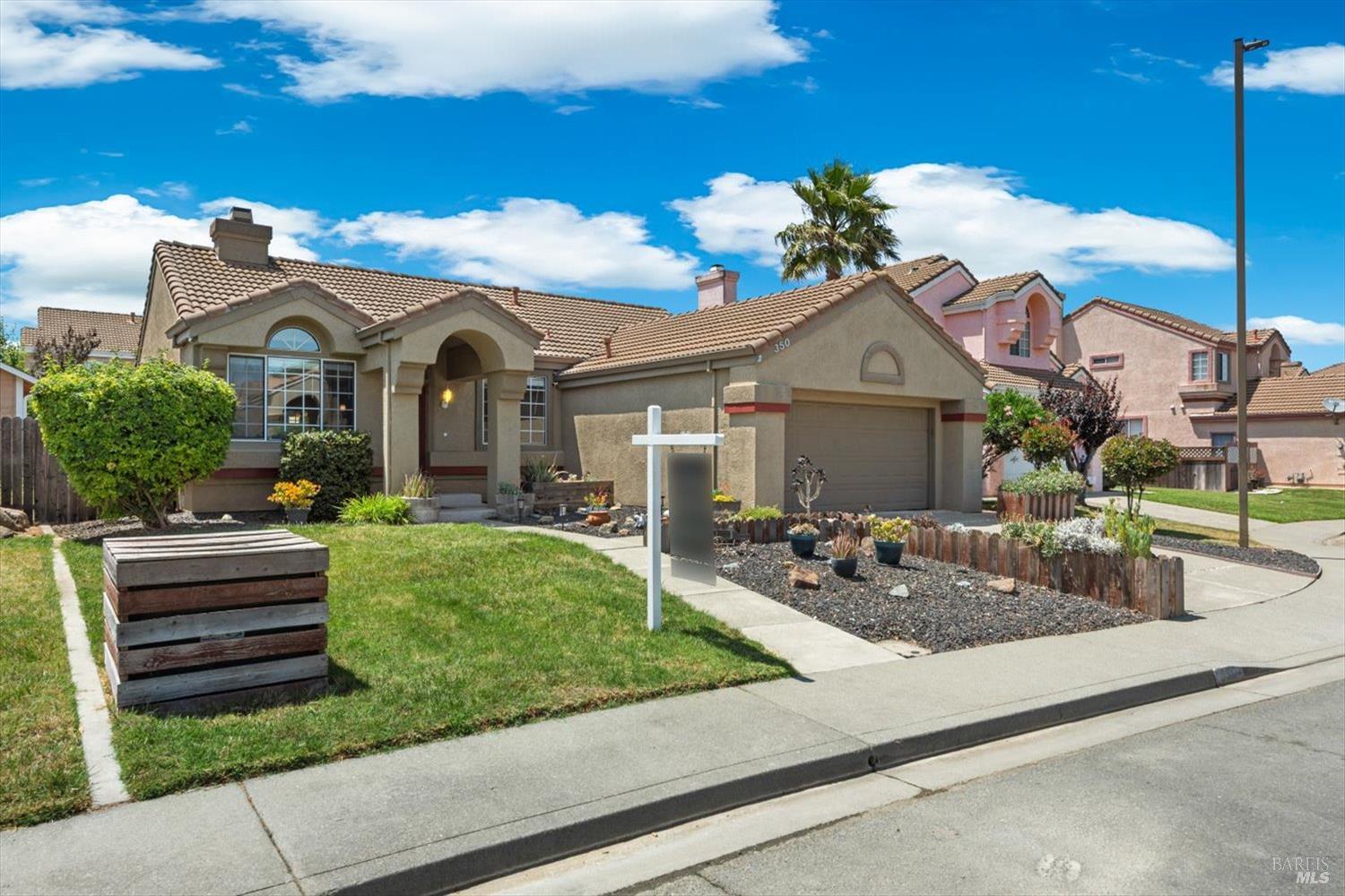 Tucked away on a quiet court in an established Suisun City neighborhood, 350 Bartlett Ct offers 1,542 sq ft of well-maintained, single-level living. This 3-bedroom, 2-bathroom home features vaulted ceilings, fresh interior paint, and hardwood flooring throughout. The semi-open layout provides defined spaces while still allowing for comfortable flow between the kitchen, dining, and living areasanchored by a classic wood-burning fireplace that adds warmth and character. Large windows throughout the home fill the space with natural light, creating an inviting and airy feel. Step outside to a spacious covered patio with privacy shades and low-maintenance landscapingideal for relaxing or entertaining. Additional highlights include a newer HVAC system and an indoor laundry room. Conveniently located near the neighborhood park, local schools, shopping, Highway 12, I-80, and Travis Air Force Base. If you've been waiting for a home that's both move-in ready and well-located, this one deserves a closer look.