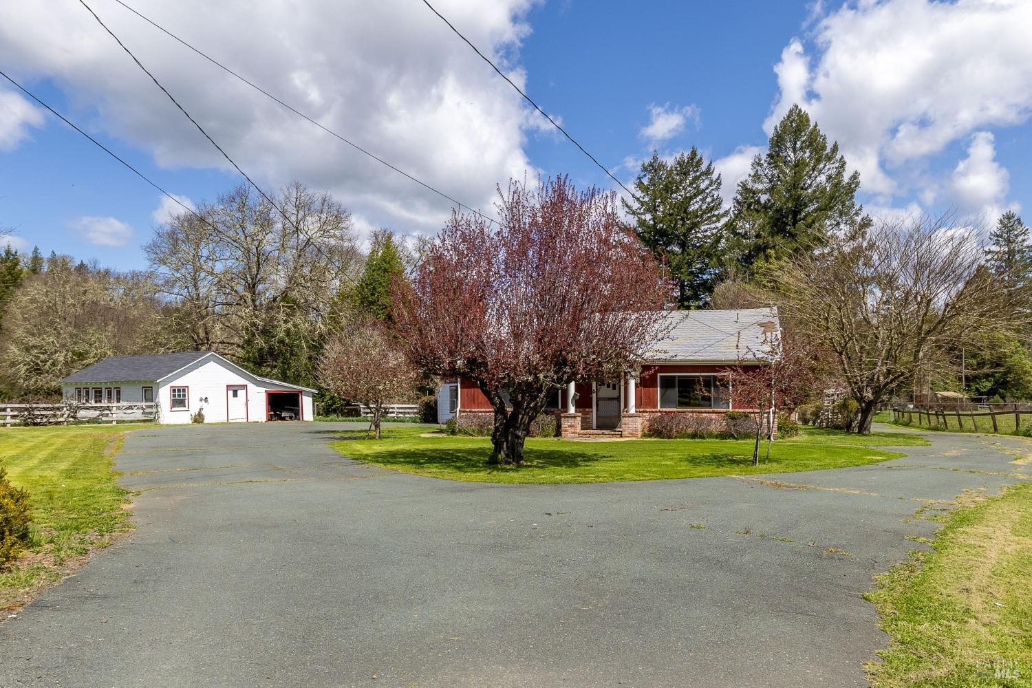 Charming Craftsman home on 10 acres with cottage, workshop, barn, and endless potential. Just minutes from town, this rare property offers space, privacy, and historic charm. The main home, built in 1935, features 3 bedrooms, 1 bathroom, formal dining room, and a cozy back porch. The second residence, known as the cottage, was the original home built in 1930 and includes 2 bedrooms, 1 bathroom, kitchen, and indoor laundry ideal for guests, rental income, or multigenerational living. Roofs on both the main house and cottage were replaced in 2015; the workshop roof is only 2 years old. Detached garage/workshop includes covered parking, large workspace, private office, and extra storage. Separate PG&E meters for each residence. Property includes city water and city sewer. Total of 10 acres...